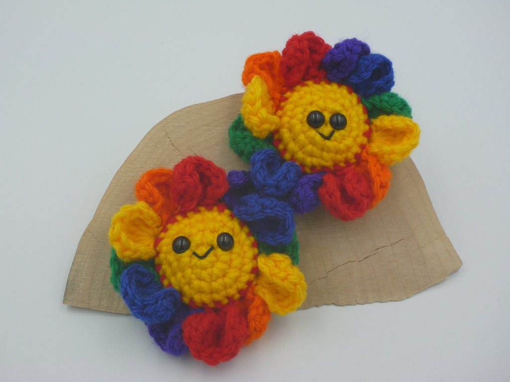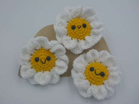 Flower measures approx. 3 inches tall and 3.5 inches wide and is made from acrylic yarn and stuffed with polyfil.