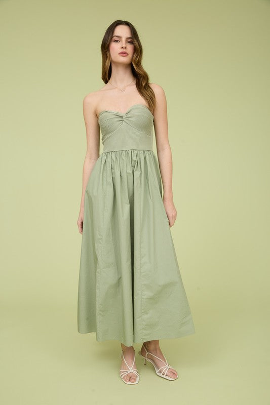 WAVES - STRAPLESS TWIST FRONT MIDI - OLIVE